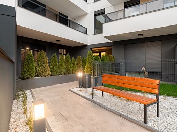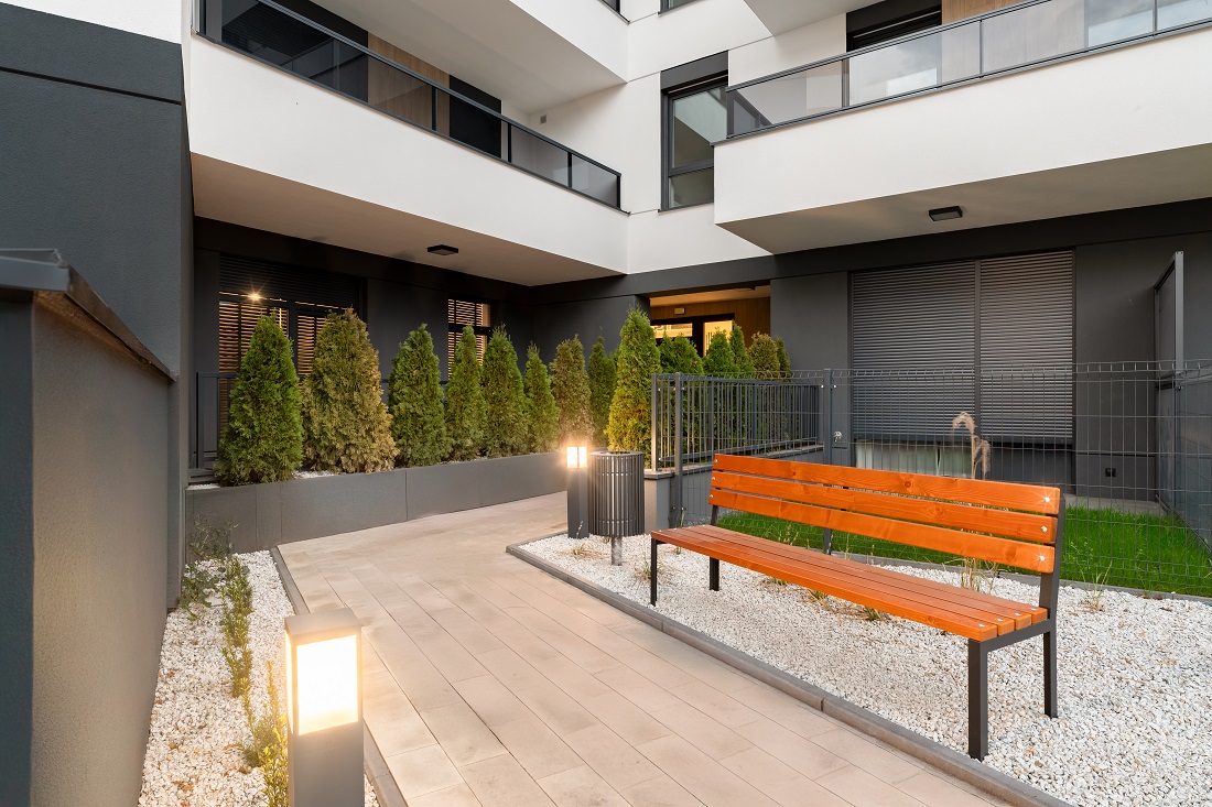 Podkreślono podziały poziome na linii balkonów, zastosowano eleganckie boniowania, a elementem charakterystycznym stały się ażurowe przesłony balkonowe nadające budynkowi oryginalności i prestiżu. Stylowe grafitowe okna dopełniają całości. Mieszkania dostępne na parterze wyróżniają się większą niż standardowa wysokością – 300 centymetrów. Inwestycja mieści zaledwie 59 mieszkań, z ogródkami na parterze i balkonami na pozostałych kondygnacjach. Pod budynkiem znajduje się hala garażowa na 54 samochody, a na zewnątrz dodatkowo parking na 5 miejsc.
