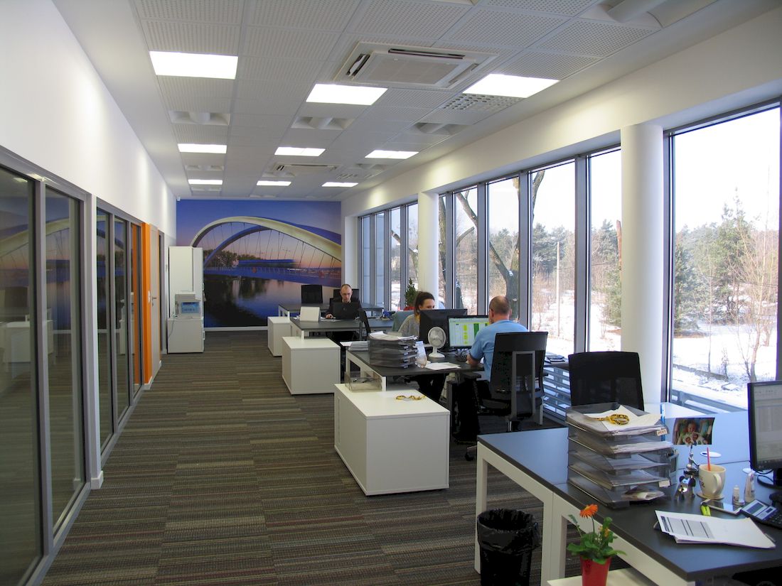 Dodatkowo należy zwrócić uwagę na wysoki standard wykończenia wnętrz części biurowej.