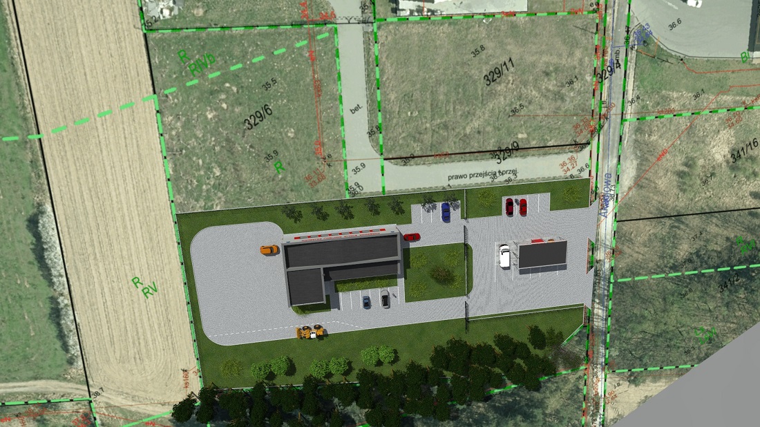We wrześniu rozpoczęliśmy budowę Hali z częścią socjalno-biurową dla celów Stacji Diagnostycznej z warsztatem naprawy samochodów i myjnią samoobsługową wraz z kompletną infrastrukturą drogowo-insttalacyjną.