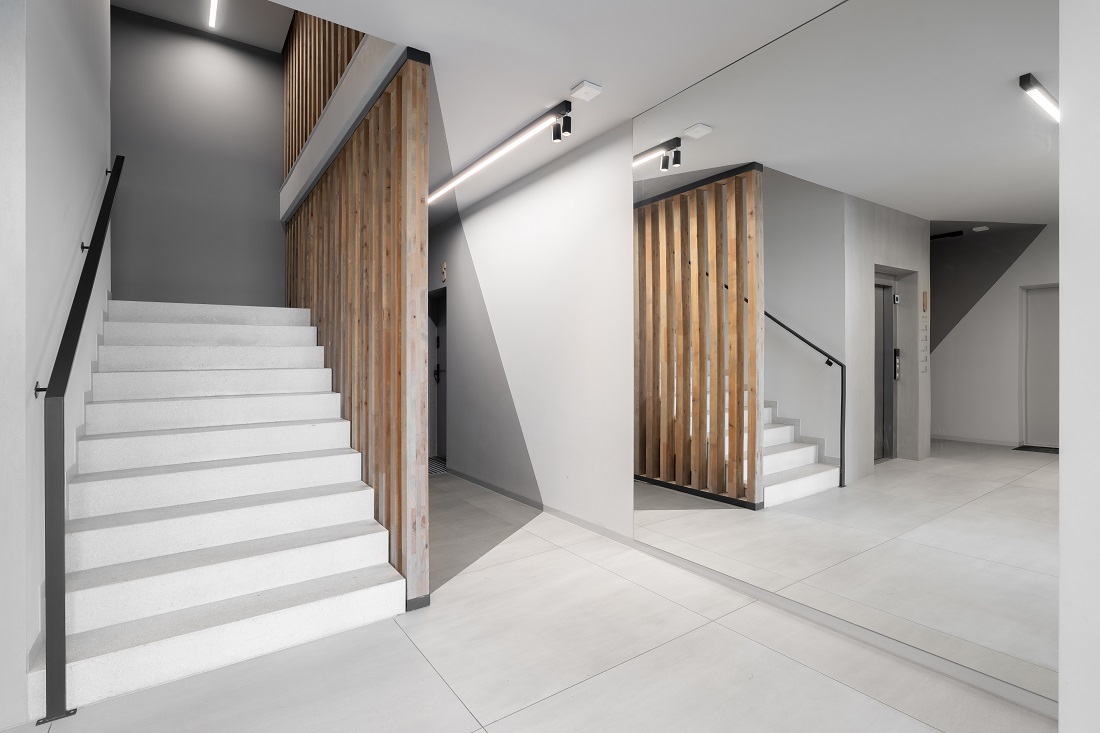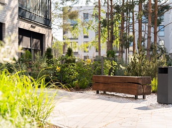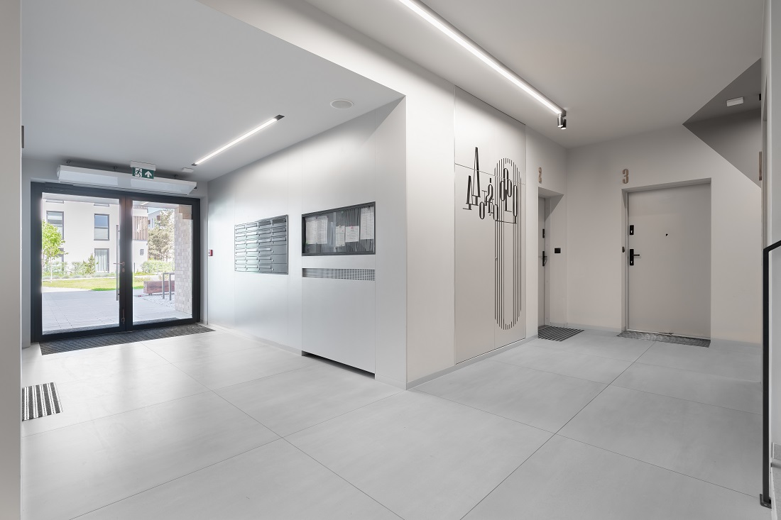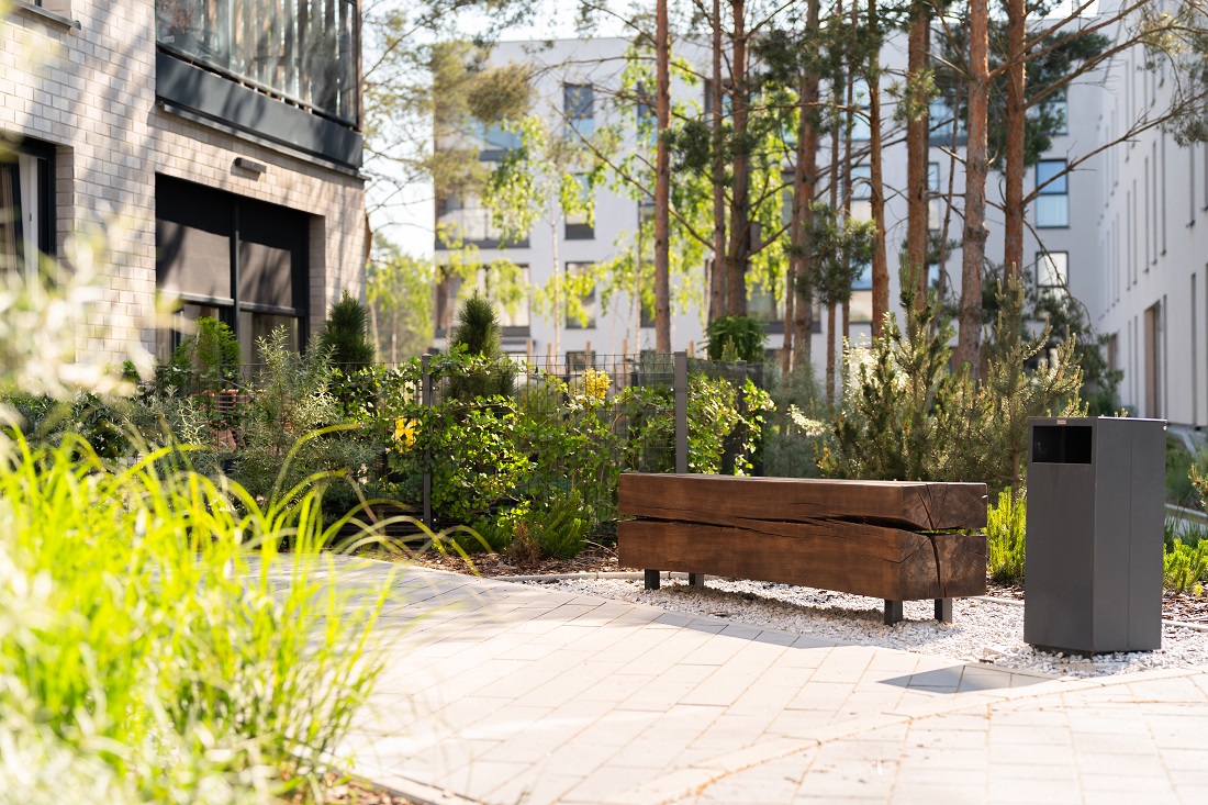 Na zewnątrz zrealizowana została również cała infrastruktura zarówno drogowa z parkingiem, instalacyjna, zagospodarowanie terenów zielonych z ogródkami Klientów jak i mała architektura, czy śmietniki pół podziemne. Budynki posiadają ekskluzywne wykończenia klatek schodowych i elewacji, gdzie wykorzystano wysokiej jakości drewno, wielkoformatowe spieki kwarcowe czy szlachetne płytki klinkierowe marki Roben, a także wyposażone są we wszelkie instalacje techniczne włącznie z systemem CCTV monitoringu osiedlowego.