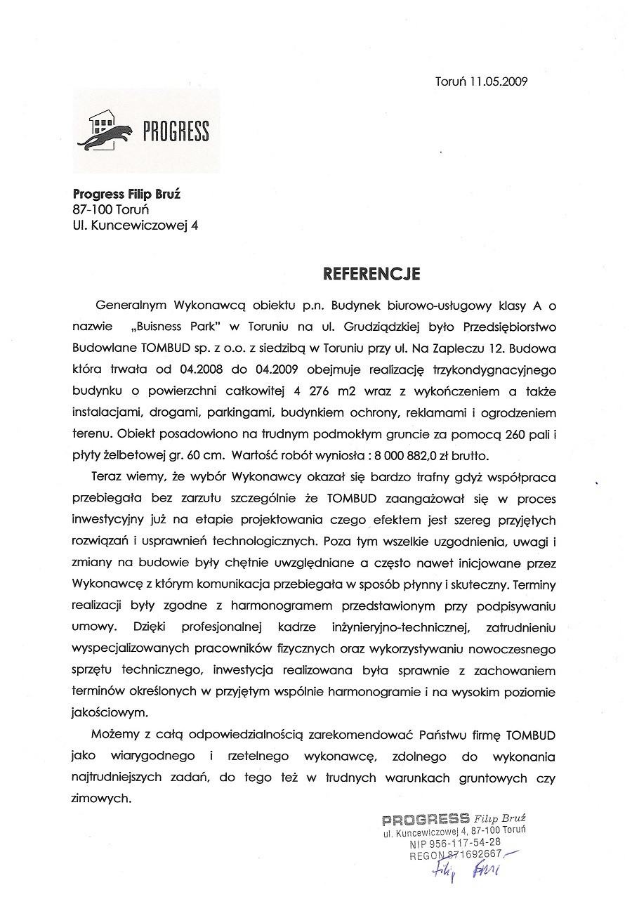 Progress Filip Bruź - Buisness Park w Toruniu przy ul. Grudziądzkiej