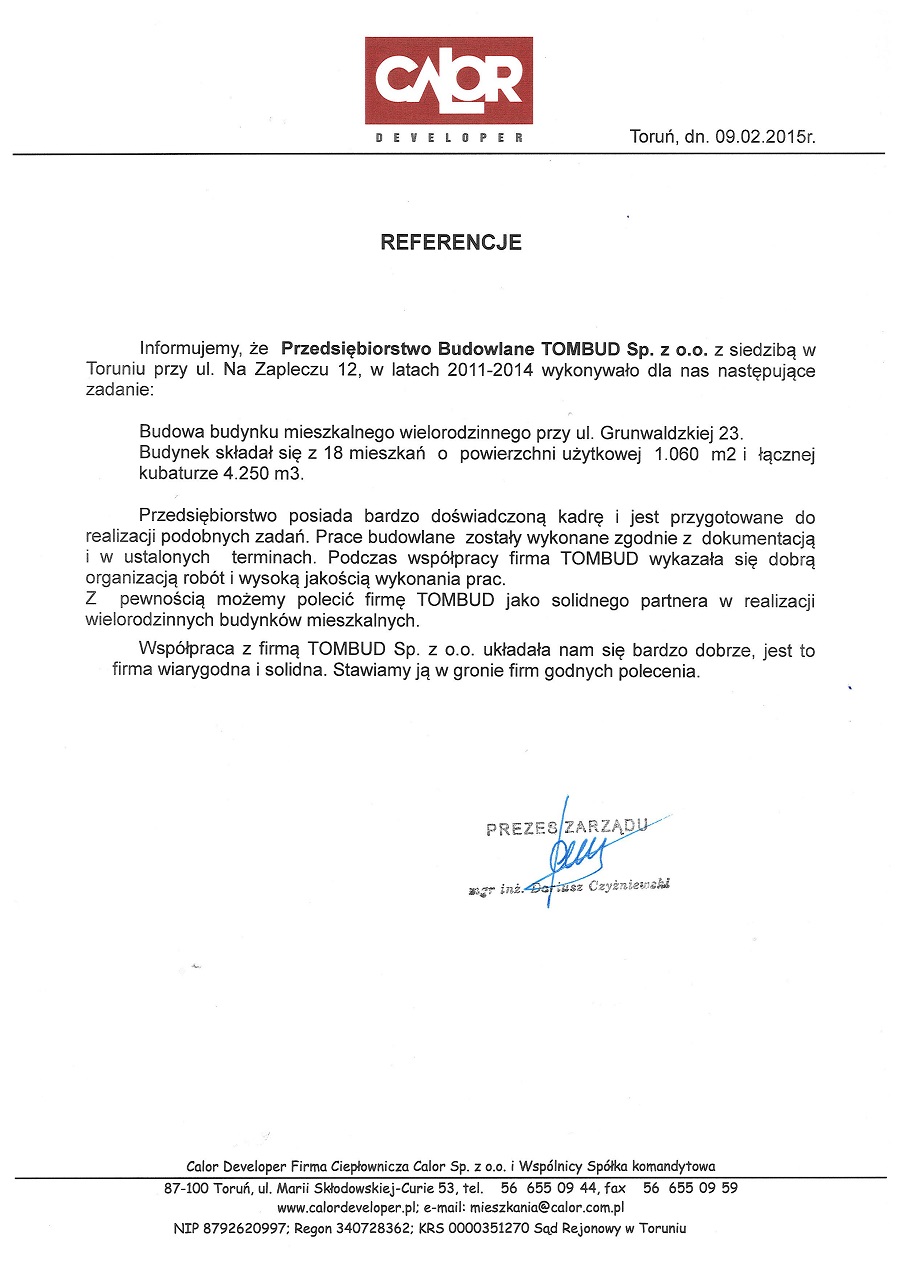 Calor Developer - Bud. mieszk. wielorodzinny w Toruniu przy ul. Grunwaldzkiej