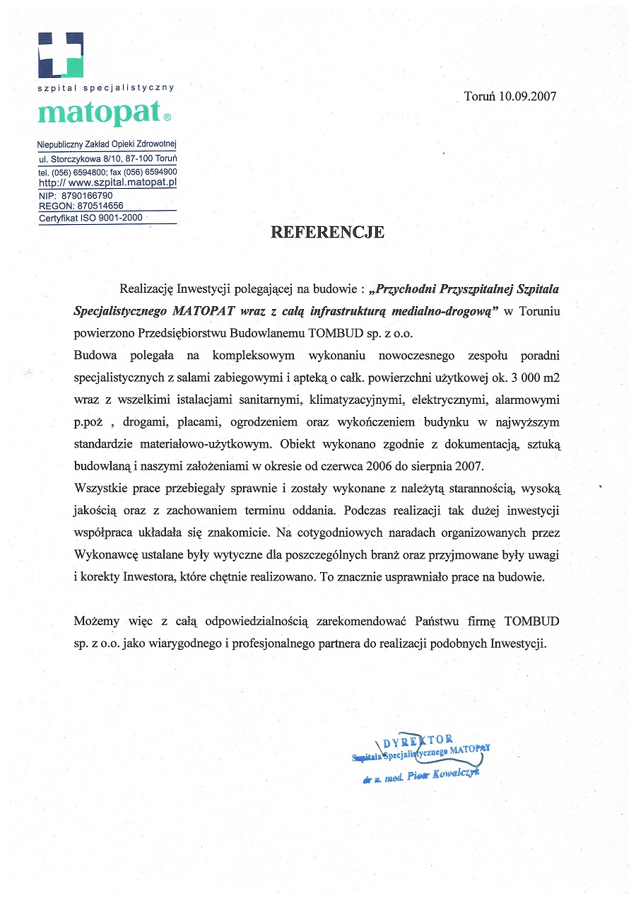 TZMO - Szpital MATOPAT w Toruniu przy ul. Storczykowej
