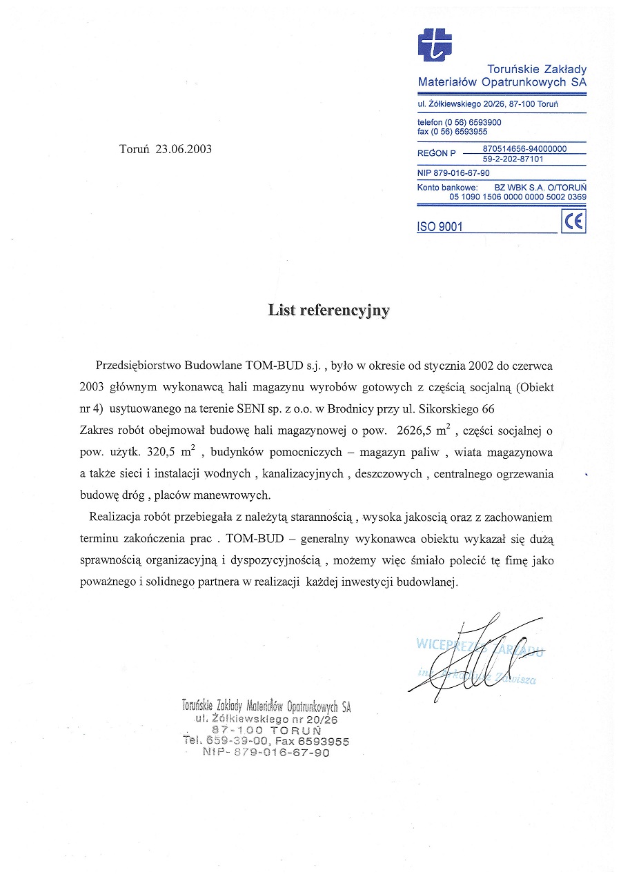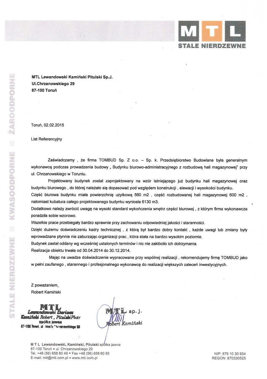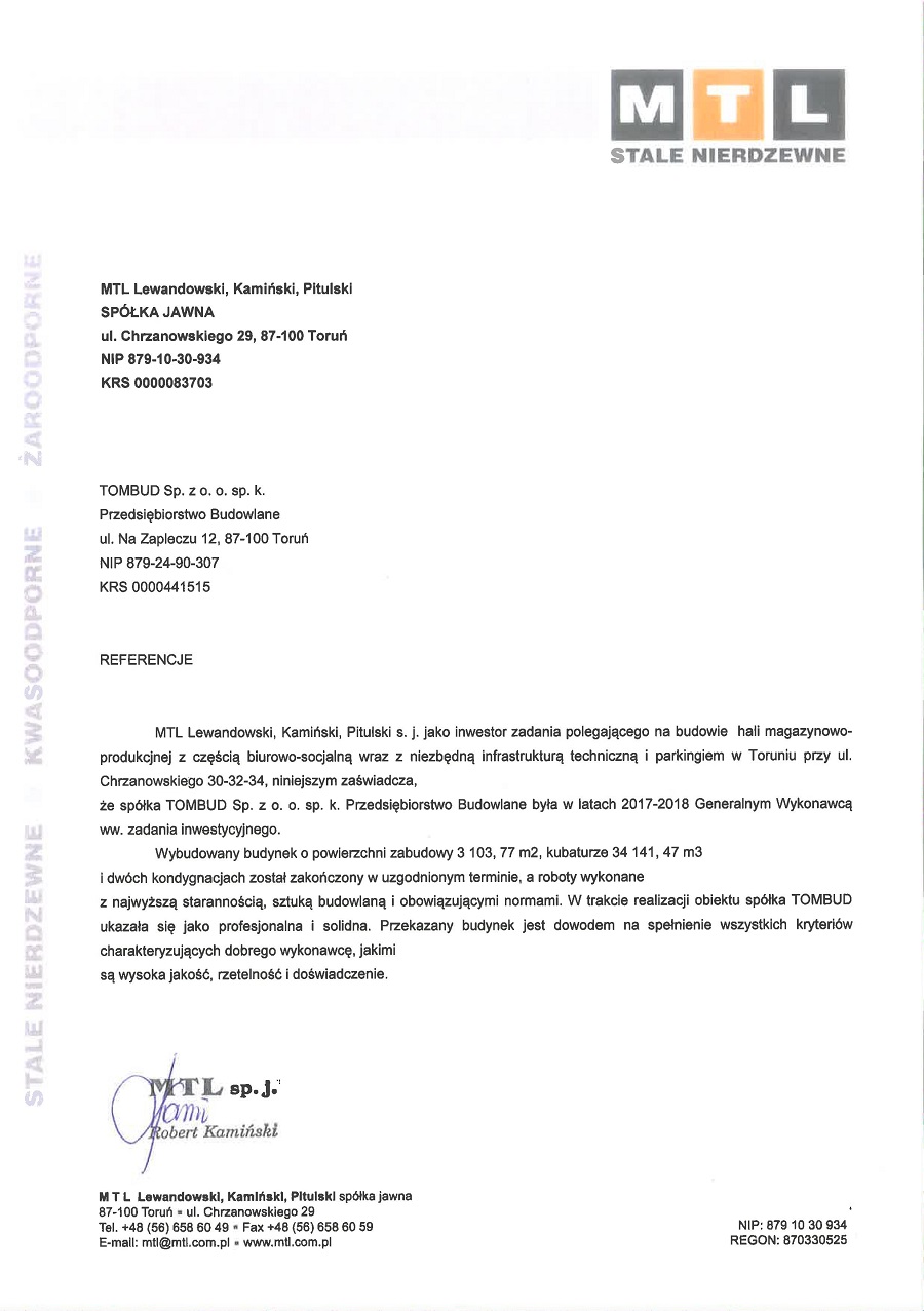 MTL Stale w Toruniu - Hala produkcyjno-magazynowa z częścią biurowo–socjalną