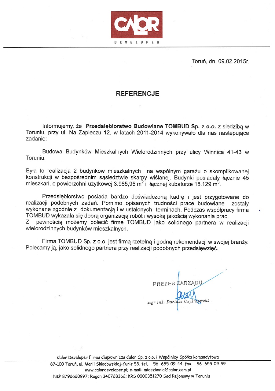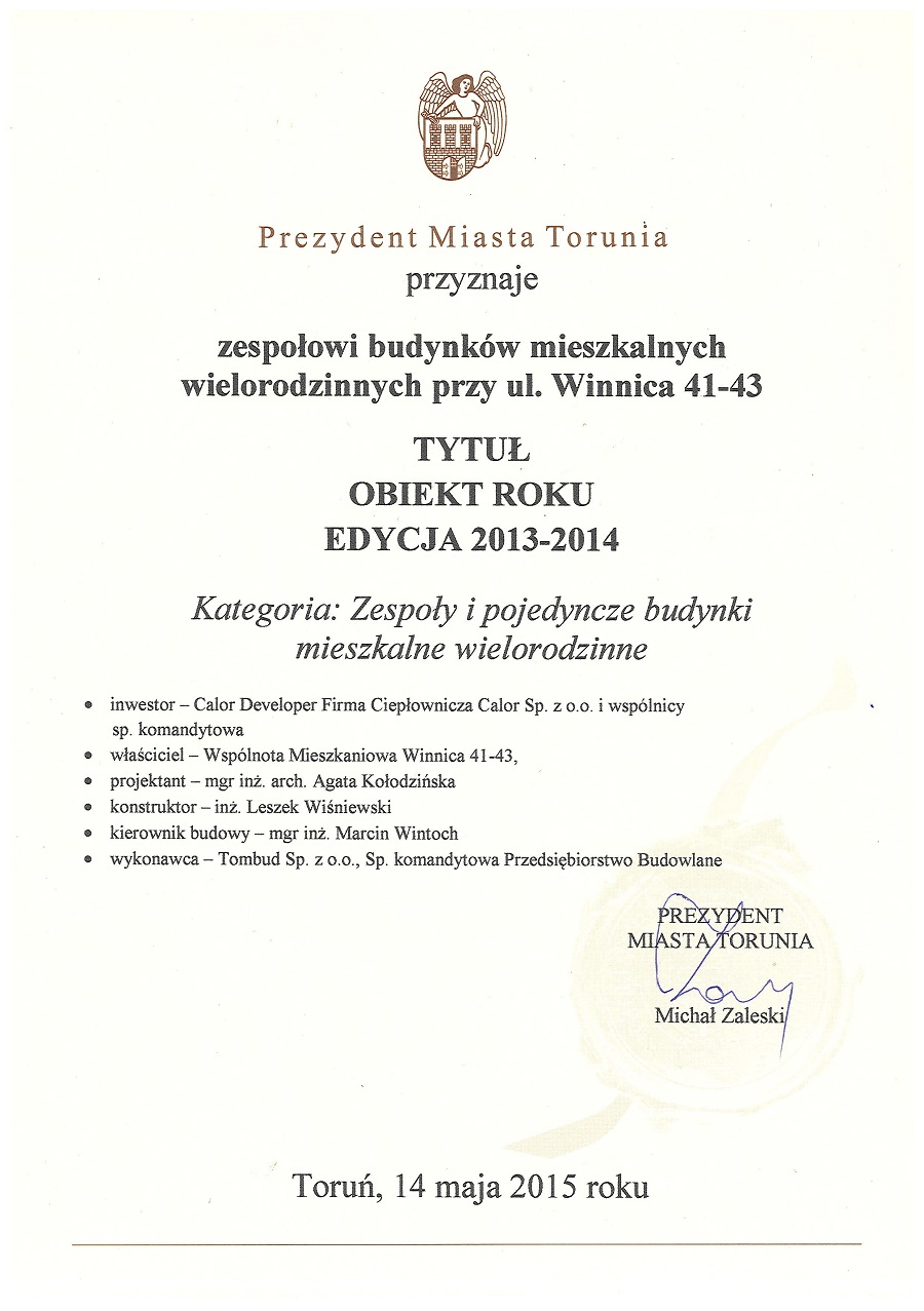 Calor Developer - Budynek mieszk. wielorodzinny "Rezydencja Winnica" w Toruniu