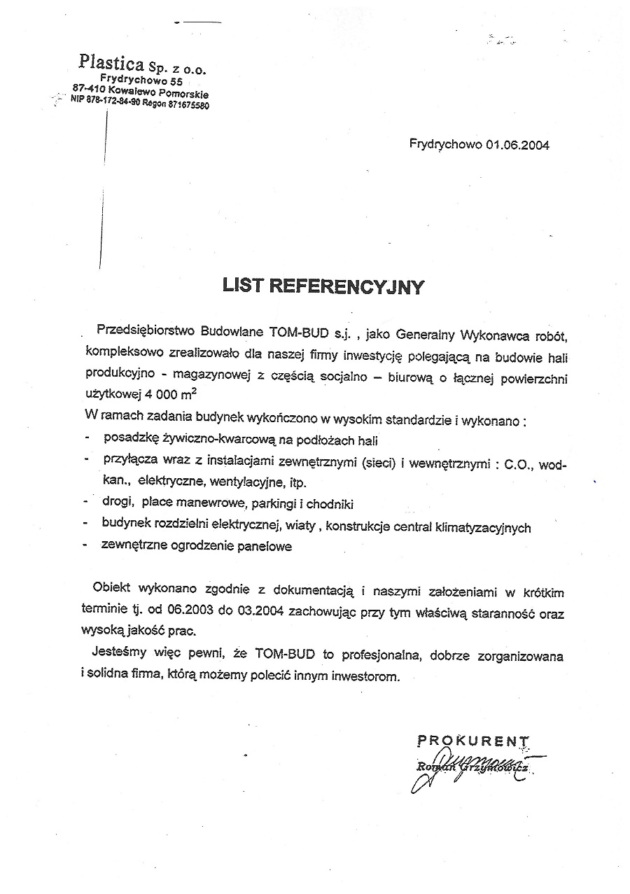 Plastica - Hala prod.-mag. z częścią socjalno-biurową w Kowalewie Pomorskim