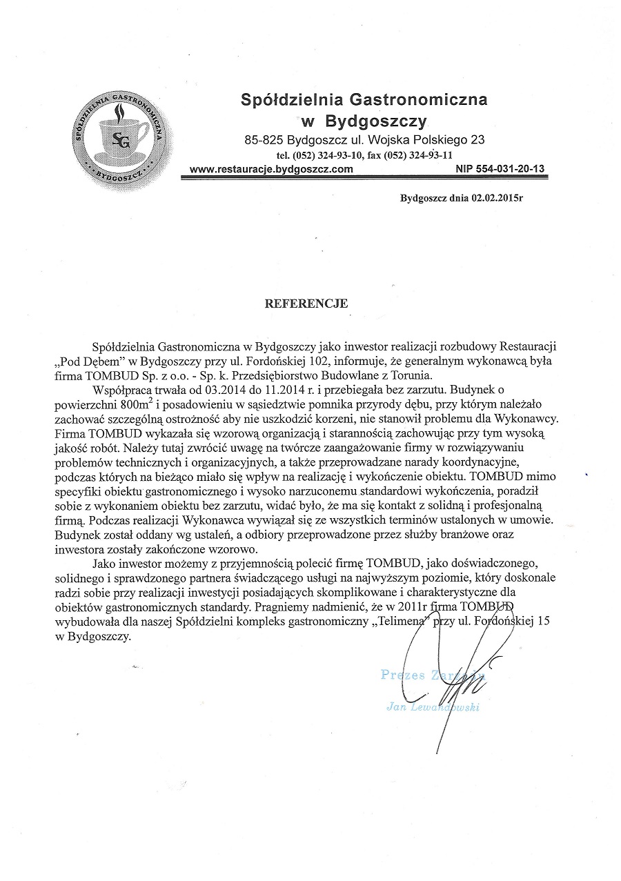 Spółdzielnia Gastronomiczna w Bydgoszczy - Restauracja "Pod Dębem" w Bydgoszczy