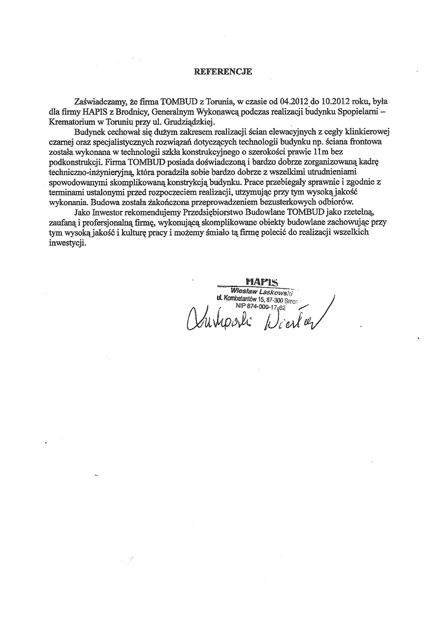 HAPIS - Spopielarnia - Krematorium w Toruniu