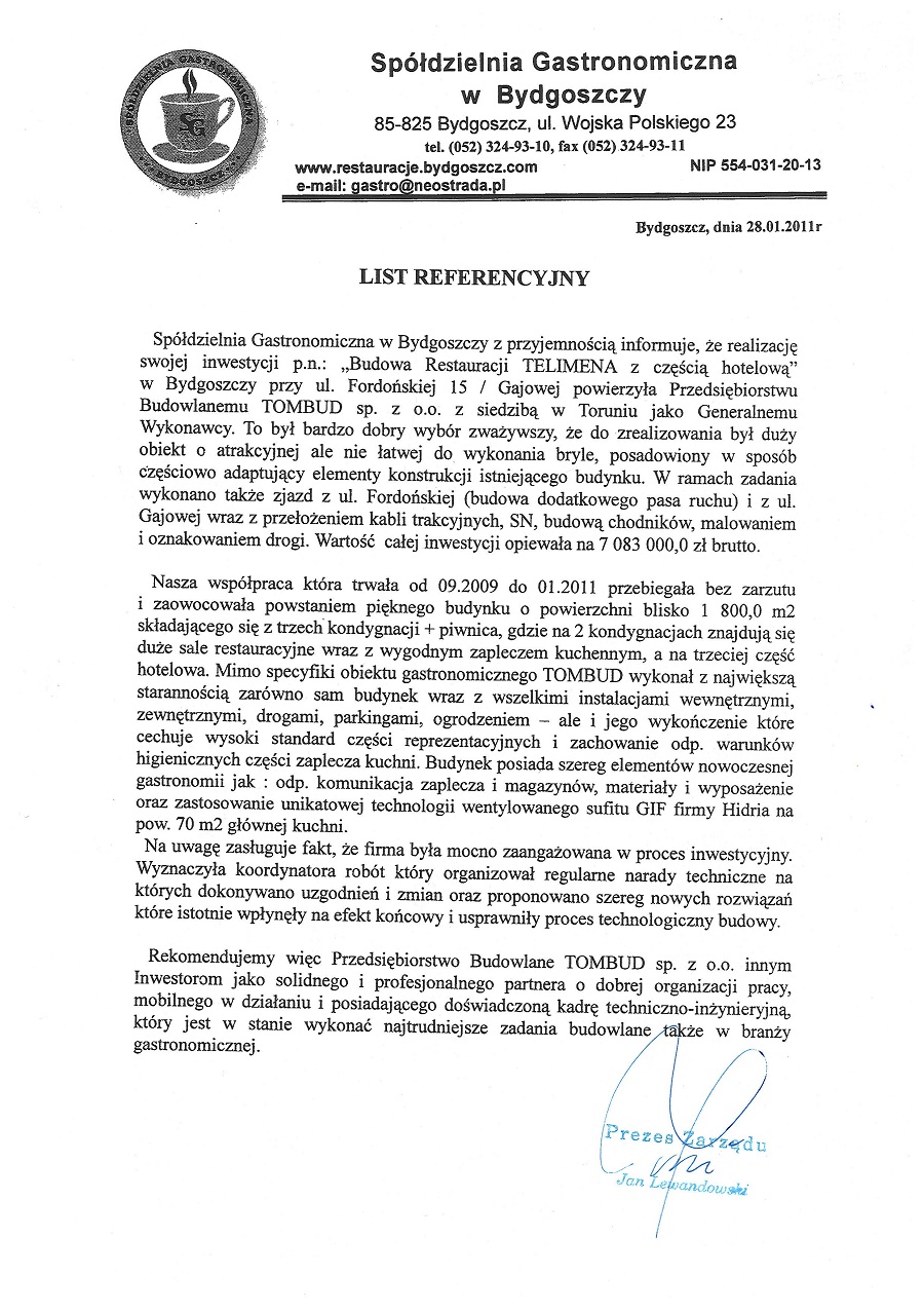 Spółdzielnia Gastronomiczna w Bydgoszczy - Restauracja Telimena w Bydgoszczy